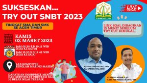 Globaldetik.com | Kabupaten Aceh Timur Cabang Dinas Pendidikan Wilayah Aceh Timur menggelar Try Out menjelang Seleksi Nasional Berdasarkan Tes (SNBT) tahun 2023, sebanyak 2.468 siswa-siswi kelas XII SMA dan SMK Se Aceh Timur mengikuti try out di sekolah masing-masing, pada hari Kamis,2 Maret 2023