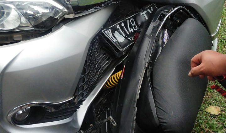 Akibat kejadian tersebut pengendara sepeda motor Gunawan mengalami luka lecet pada leher dan memar pada pinggang sedang kan istrinya Jumini mengalami luka pada tempurung kaki sebelah kanan dan kerugian materi Rp, 500.000,(Lima Ratus Ribu Rupiah)