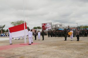 Upacara HUT RI ke 78 di kabupaten perbatasan antara RI dan Papua Nugini tersebut bertajuk tema dengan tema “Terus Melaju Untuk Indonesia Maju”.