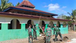 Kegiatan Karya Bakti yang dilakukan anggota Satgas Pamtas Statis RI- PNG Yonif 111/KB kali ini membantu masyarakat mengerjakan sarana tempat ibadah Mesjid Al- Iklas Desa Camp-19 Distrik Jair Kab.Boven Digoel Papua Selatan.