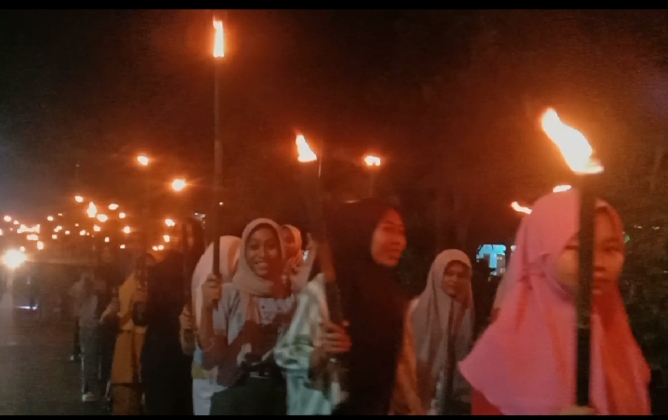 Deli Serdang : Remaja Masjid Al-Khairat menggelar takbir keliling dan pawai obor pada malam takbiran untuk syiar dan memeriahkan Idul Fitri 1445 H di Dusun IV Desa Wonosari, Kecamatan Tanjung Morawa Kabupaten Deli Serdang, Provinsi Sumatera Utara.Rabu(10/04/2024)