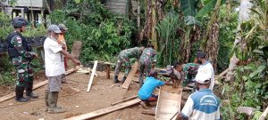 Anggota Pos Upkim dari Satgas Pamtas Yonif 111/KB berbaur bersama masyarakat dalam memberikan bantuan menyiapkan peti zenajah salah satu warga yang meninggal dunia bertempat dikampung Upkim Distrik Waropko Kabupaten Boven Digoel Perbatasan Papua Selatan.