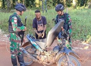 Anggota TNI dari Satgas Pamtas Yonif 111/KB, Pos KM 30 Dipimpin Serka Rijal Arifin melaksanakan Patroli Keamanan di sektor yang dicurigai menjadi akses keluar masuknya masyarakat dengan melakukan pemeriksaan baik itu identitas maupun barang bawaan masyarakat yang melintas di Jalan tikus Perbatasan.