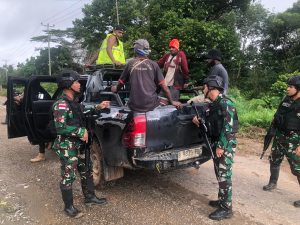 Anggota Satgas Pamtas Yonif 111/KB Pos KM 53 melakukan pemeriksaan terhadap pelintas batas di Distrik Sesnuk Kab. Boven Digoel dengan memeriksa dokumen dan barang bawaan serta memberikan penekanan untuk tidak menerobos Pos Pengamanan atau melanggar aturan Pelintas Batas demi keamanan dan keselamatan pelintas batas itu sendiri.