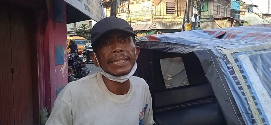 “Jangan cari makan disini katanya becak disana cari makan becak padahal kami udah lama mangkal disini iya itulah dia gak sabar didatanginya aku sambil ditolaknya becakku padahal gak ada kena dibilangnya tengok mobilku lecet,” Ungkap Ijul (50)