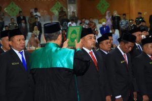 Dalam prosesi pelantikan, anggota DPRK mengucapkan sumpah yang dipimpin langsung oleh Ketua Pengadilan Negeri Kualasimpang Tri Syahriawani Saragih, S.H., M.H.