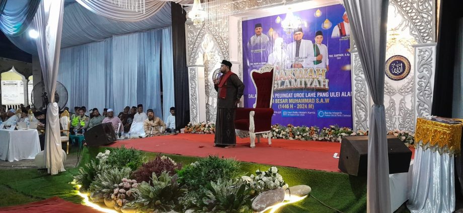 Globaldetik.com | ACEH UTARA – Badan Kemakmuran Masjid (BKM) Kemasjidan At -Taqwa Blang Meugit Gampong Blang Ara, Kemukiman, Pirak Tunong, Kecamatan Paya Bakong, Aceh Utara menggelar Dakwah Islamiyah dalam rangka memperingati hari lahir Baginda Rasulullah, SAW 1446H/2024M,di halaman Mesjid setempat pada Rabu 25/9/2024,malam.