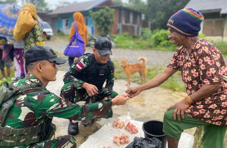 Masyarakat Senang TNI Dari Satgas Pamtas Statis RI-PNG Yonif 111/KB Belanja di Pasar Tradisional Mindiptana2024-09-09