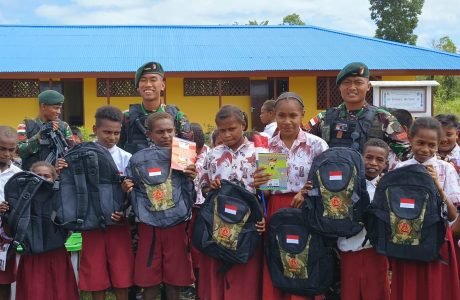 Disambut Murid Sekolah Satgas Pamtas Statis RI-PNG Yonif 111/KB Berikan Bantuan Alat Tulis Dan Tas Sekolah Di SD Inpres Muting2024-09-04