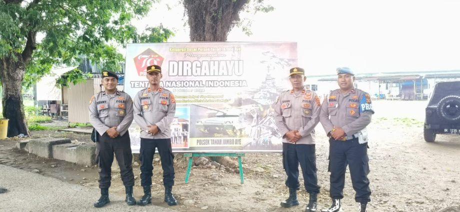 melalui Kapolsek Tanah Jambo Aye IPTU Herman Saputra,S.H beserta personil Memberikan ucapan selamat DIRGAHAYU TNI ke 79 dengan tema,”TNI modern bersama rakyat siap mengawal suksesi kepemimpinan Nasional untuk maju,”.
