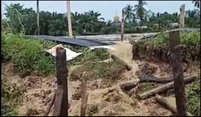 GlobalDetik.com | Aceh Tamiang – Tanggul Di Seruway Jebol karena derasnya debet air banjir yang menerpa dan derasnya arus hujan yang turun sepanjang hari, Minggu (13/10/2024)