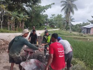 Aceh Tamiang – Babinsa Koramil 09/Banda Mulia jajaran Kodim 0117/Aceh Tamiang Serka Erwan bersama warga masyarakat gotong royong membuat parit irigasi untuk persawahan di Desa Matang Seping, Kecamatan Banda Mulia, Kabupaten Aceh Tamiang. Minggu (03/11/2024).