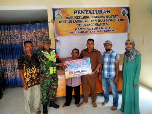 Aceh Tamiang – Babinsa Koramil 08/Rantau Serma Wakidi memantau sekaligus mendampingi penyaluran Bantuan Langsung Tunai (BLT) Bulan (Oktober dan November) tahun anggaran 2024 bertempat di Desa Suka Mulia, Kecamatan Rantau, Kabupaten Aceh Tamiang. Selasa (05/11/2024)