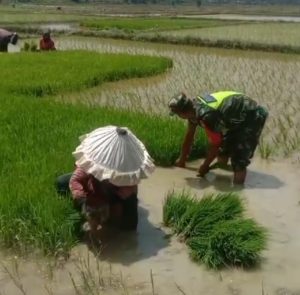 Pada kesempatan tersebut, Babinsa tak segan untuk terjun langsung ke sawah, membantu para petani untuk mengumpulkan bibit padi yang siap untuk ditanam di lahan milik warga.