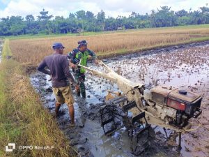 Kegiatan pendampingan membajak sawah dengan menggunakan traktor yang dilaksanakan Babinsa Sertu F Hasibuan adalah cara lebih cepat membantu petani untuk menyuburkan tanah.