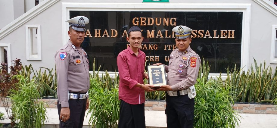 Globaldetik.com|ACEH UTARA – Kepala Urusan Pembinaan Operasi (KBO) Lantas Polres Aceh Utara, Ipda Irvan menyerahkan kitab untuk Santri di Dayah Malikussaleh Desa Tanjong Rawang Itek, Kecamatan Tanah Jambo Aye Kabupaten Aceh Utara.