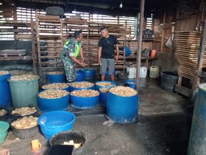“Kita silaturahmi ke rumah usaha milik bapak Nuar yang merupakan pelaku UMKM pengolahan tahu, sekaligus ikut membantu proses pengolahan dan memberikan memotivasi agar tetap mempertahankan kualitas produksinya sehingga mampu bersaing dipasaran”, ujar Babinsa.