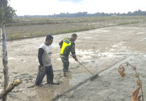 Aceh Tamiang – Dalam rangka mendukung program Ketahanan pangan, Babinsa Koramil 09/Banda Mulia jajaran Kodim 0117/Aceh Tamiang Serka Erwan melaksanakan pendampingan petani dengan membantu penyiapan lahan penyemaian padi milik Zulkarnaen di Desa Alur Nunang, Kecamatan Banda Mulia, Kabupaten Aceh Tamiang. Selasa (19/11/2024)