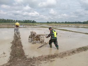 Babinsa Serda Hendri Syahrial Siregar mengatakan kegiatan yang dilaksanakan tersebut bertujuan sebagai upaya percepatan proses tanam padi