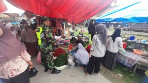 Aceh Tamiang – Babinsa Koramil 06/Manyak Payed Serka Irwan Lubis melaksanakan pengecekan ketersediaan harga Sembako secara langsung di Pasar pekan mingguan Tualang Cut, Kecamatan Manyak Payed, Kabupaten Aceh Tamiang. Sabtu (23/11/2024)