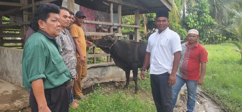 GLOBALDETIK.COM|ACEH TIMUR-Sejumlah Geuchik(Kepala Desa) di wilayah Kecamatan Madat Kabupaten Aceh Timur khususnya Sagoe Darul Falah,menyerahkan satu ekor lembu untuk acara Milad GAM ke 48.