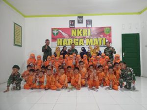 Bati Tuud Serma Fajar dan Anggota Koramil menyambut kedatangan anak didik TK RA Darul Qur’an, Seperti diketahui inti dari kunjungan anak didik TK adalah mengenalkan kepada lingkungan TNI khususnya di Koramil 05/Tamiang Hulu dan memperkenalkan kedisiplinan sedini mungkin kepada anak.