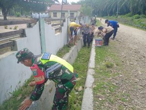 Aceh Tamiang – Bintara Pembina Desa atau Babinsa Koramil 05/Tamiang Hulu bersama Babinkamtibmas dan siswa Sekolah Menengah Pertama (SMP Tamiang Hulu) melaksanakan kerja bakti membersihkan parit dan halaman sekolah, bertempat kegiatan karya bhakti di Desa Bandar Setia, Kecamatan Tamiang Hulu, Kabupaten Aceh Tamiang. Sabtu (07/12/2024)