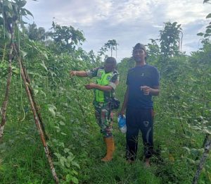 Aceh Tamiang – Babinsa Koramil 09/Banda Mulia Serka Darmi melakukan komunikasi sosial (komsos) dan membantu petani merawat tanaman kacang panjang di Desa Paya Rahat, Kecamatan Banda Mulia, Kabupaten Aceh Tamiang. Minggu (08/12/2024)