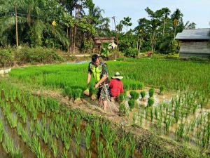 Aceh Tamiang – Babinsa Koramil 04/Bendahara Serda Dasriyansyah melaksanakan kegiatan pendampingan dan membantu petani yang sedang menanam padi jenis Hibrida di lahan seluas ±4 Rante milik ibu Fatimah di Desa Bandar Baru, Kecamatan Bendahara, Kabupaten Aceh Tamiang. Rabu (18/12/2024)