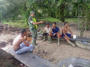 Serda Ferdian menyampaikan,” Kegiatan Komsos ini dilakukan di tempat salah satu Kebun sawit warga, dengan tujuan mengajak warga petani sawit untuk tetap mengutamakan keselamatan kerja didalam memanen sawit