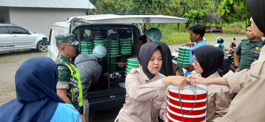 Aceh Tamiang – Kodim 0117/Aceh Tamiang mendampingi Badan Gizi Nasional (BGN) yang berkerja sama dengan ” Yayasan Pemuda Santri Aceh Barat ” dalam melaksanakan makan bergizi gratis bagi 3.234 pelajar yang berasal dari sembilan sekolah yang ada di Kecamatan Kejuruan Muda, Kabupaten Aceh Tamiang. Senin (13/01/2025)