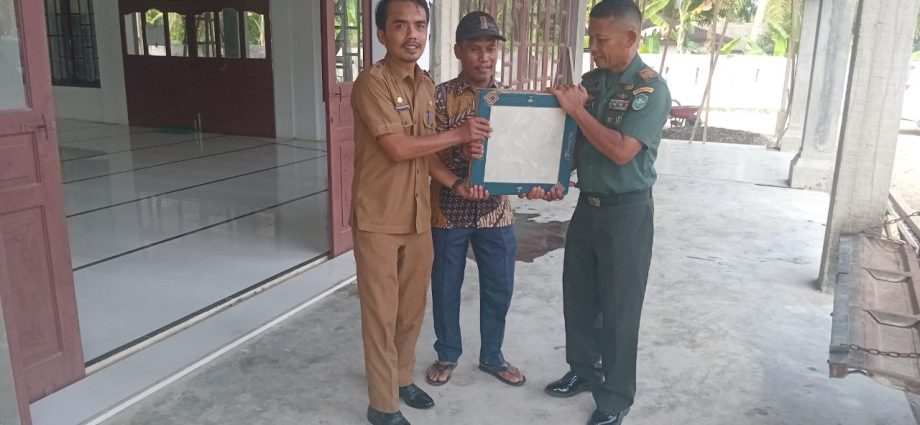 Aceh Tamiang – Komandan Koramil 09/Banda Mulia Kapten Inf M Lumban Raja di dampingi Camat Banda Mulia menyerahkan bantuan keramik dari Panglima Kodam Iskandar Muda (IM), Mayjen TNI Niko Fahrizal, M.Tr. (Han),.ke Meunasah Al Ikhlas Dusun Sidomulyo 2 Desa Telaga Meku 2, Kecamatan Banda Mulia, Kabupaten Aceh Tamiang. Selasa (21/01/2025) sore