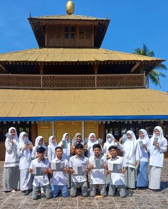 Peserta diajak berkeliling masjid untuk melihat Sejarah pendirian masjid, tokoh-tokoh yang terlibat, serta peran masjid dalam perkembangan Islam di kawasan tersebut dijelaskan oleh pemandu.