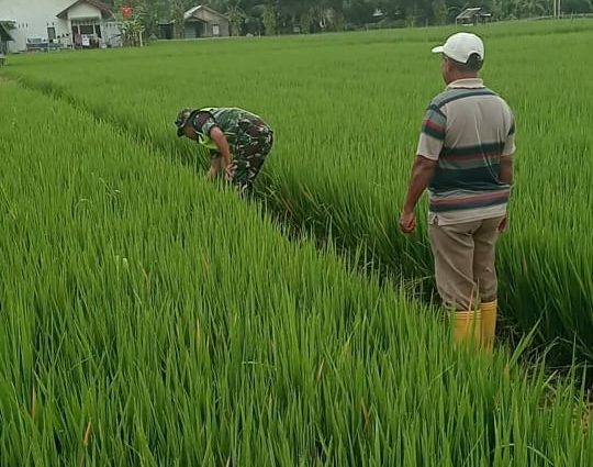 Dalam hal ini Babinsa Serda Ridwan melaksanakan pendampingan pengecekan padi yang telah ditanam, dengan sekaligus memperhatikan air yang mengairi sawah.