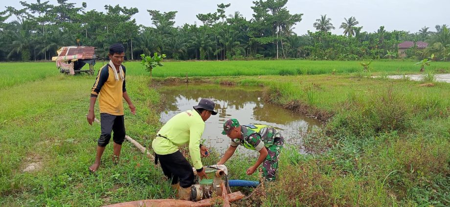 Aceh Tamiang – Dalam pendampingan petani warga binaan, Babinsa Koramil 03/Seruway Serda Budi Utomo Melaksanakan pendampingan Hanpangan membantu petani melakukan pengairan sawah menggunakan metode pompanisasi,Pendampingan ini bertujuan untuk meningkatkan produktivitas pertanian,Milik Bapak Surya, luas 5 Rantai, anggota Poktan Mabar jaya di Desa Muka sungai Kuruk, Kecamatan Seruway, kabupaten Aceh Tamiang. Senin (10/02/2025)