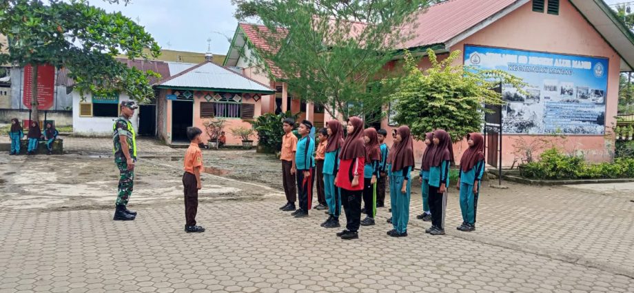 Aceh Tamiang – Babinsa Koramil 08/Rantau Serda Aprian memberikan pelatihan Peraturan Baris Berbaris (PBB) kepada siswa dan siswi Sekolah Dasar Negeri Alur Manis guna membentuk jiwa kedisiplinan sejak dini, bertempat di Desa Alur Manis, Kecamatan Rantau, Kabuapaten Aceh Tamiang. Rabu (12/02/2025)