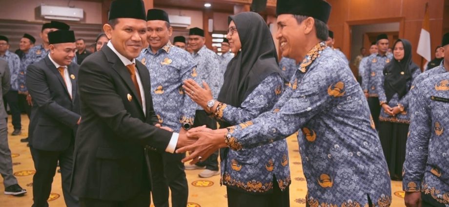 Globaldetik.com|Banda Aceh-Wakil Gubernur Aceh, Fadhlullah, menyerahkan surat keputusan (SK) penunjukan Alhudri sebagai Pelaksana Tugas (Plt) Sekretaris Daerah Aceh menggantikan Muhammad Diwarsyah, di Gedung Serbaguna Kantor Gubernur Aceh, pada Rabu, (19/2/2025).