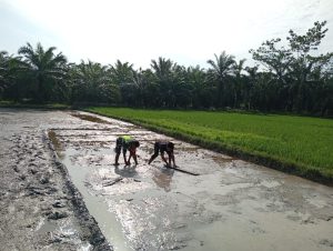 “Meski dalam keadaan haus dan lapar karena sedang berpuasa, kita bersama masyarakat tetap semangat dalam melaksanakan membuat bedeng padi ini,” ungkapnya.