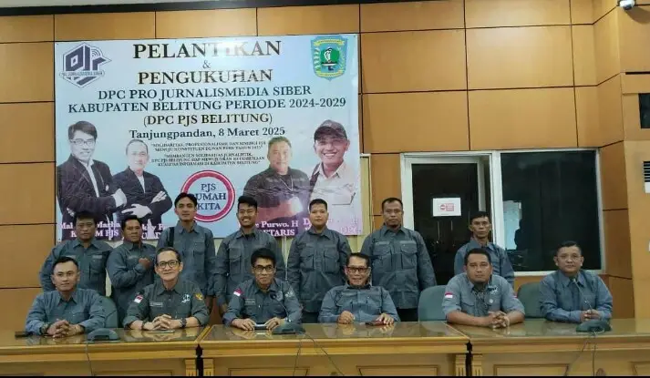 GLOBALDETIK.COM | BELITUNG – Pada Sabtu, 8 Maret 2025, sebuah tonggak sejarah baru terukir di Kabupaten Belitung dengan dilantiknya Dewan Pimpinan Cabang (DPC) Pers Pro Jurnalis Media Siber (PJS) Kabupaten Belitung. Bertempat di Aula Kantor Bupati Belitung, pelantikan ini dipimpin langsung oleh Ketua Dewan Pimpinan Daerah (DPD) PJS Provinsi Bangka Belitung, Bapak Rikky Permana, menandai dimulainya babak baru bagi perkembangan jurnalisme di daerah tersebut. Kehadiran Ketua Umum DPP PJS, Bapak Mahmud Marhaba, semakin mengukuhkan pentingnya momentum ini. Suasana pelantikan semakin semarak dengan kehadiran perwakilan unsur pimpinan daerah, Kepala Dinas Kominfo Kabupaten Belitung (yang mewakili Bupati), Wakil Ketua DPRD Kabupaten Belitung, Kasi Humas Polres Belitung AKP Bambang, Kasi Intel Kejari Belitung, Ketua Pokja Belitung, serta perwakilan dari berbagai organisasi pers dan insan jurnalis di Kabupaten Belitung.