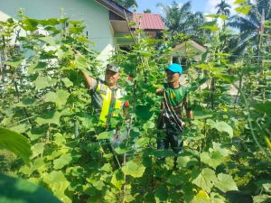 Aceh Tamiang – Pendampingan ketahanan pangan terus dilakukan Babinsa jajaran Kodim 0117/Aceh Tamiang Pendampingan pertanian dilakukan Para Babinsa tidak hanya bagi petani padi saja namun termasuk petani sayur Seperti yang dilakukan Serda M. Andi Babinsa Koramil 06/Manyak Payed melaksanakan pendampingan pertanian tanaman timun Desa Lhok Medang Ara, Kecamatan Manyak Payed, Kabupaten Aceh Tamiang. Jumat ((14/03/2025)