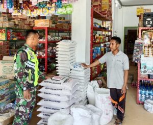 Dalam kegiatannya Sertu Tri Susilo mengecek ketersediaan beras guna memantau ketersediaan serta kebutuhan pangan di wilayah Koramil 06/Manyak Payed.