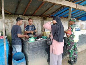 Aceh Tamiang – Babinsa Koramil 08/Rantau, Kodim 0117/Aceh Tamiang Serma Syafrizal melaksanakan kegiatan Komunikasi sosial dengan penjual ikan di pasar ikanl di Desa Alur Cucur, Kecamatan Rantau, Kabupaten Aceh Tamiang. Jumat (21/03/2025)