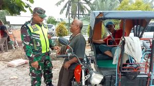 Dalam Komsosnya Serda Adi menyambangi sekaligus menghimbau para tukang becak untuk selalu berhati-hati dan waspada saat membawa penumpang beserta barang yang dibawa.
