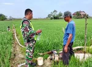 Aceh Tamiang – Babinsa Koramil 06/Manyak Payed Serka Budi Gunawan bersama-sama dengan Ketua Poktan Mandiri Junaidi melaksanakan pemantauan perkembangan tanaman padi sawah di Desa Sampaimah, Kecamatan Manyak Payed, Kabupaten Aceh Tamiang. Sabtu (05/04/2025)
