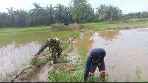 Aceh Tamiang – Babinsa Koramil 02/Karang Baru Sertu Indar Mawan melakukan pendampingan dalam proses pembersihan hama keong dilahan seluas 5 Rante milik Pak Ardi di Desa Paya Meta, Kecamatan Karang Baru, Kabupaten Aceh Tamiang. Minggu (13/04/2025)