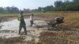 “Pengolahan lahan dengan menggunakan traktor adalah Pengolahan lahan yang dapat membantu petani untuk menyuburkan tanah yang akan ditanami padi,” kata Babinsa.