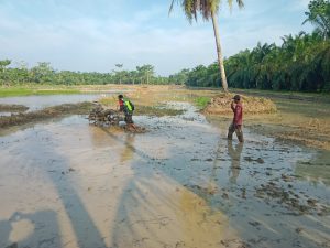 Aceh Tamiang – Babinsa Koramil 04/Bendahara, Kodim 0117/Aceh Tamiang Sertu Joko Hariyanto melaksanakan kegiatan Hanpangan dengan membantu Bapak Heri dalam membajak sawah menggunakan mesin traktor, bertempat di Desa Teluk Halban, Kecamatan Bendahara, Kabupaten Aceh Tamiang. Kamis (17/04/2025)