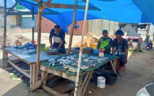 Aceh Tamiang – Babinsa Koramil 03/Seruway Serda Budi Utomo melaksanakan kegiatan komunikasi sosial (komsos) bersama para pedagang ikan di Desa Pekan Seruway, Kecamatan Seruway, Kabupaten Aceh Tamiang. Minggu (20/04/2025)