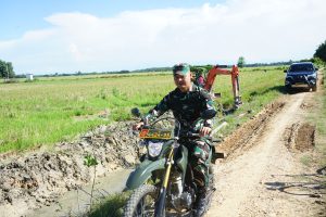 “Kedatangan kita hari ini untuk mengecek tahap pelaksanaan pekerjaan sasaran Optimalisasi Lahan (Oplah) yang telah dilaksanakan sepert Normalisasi parit irigasi, Pintu Air. Box culvert dan Pasangan batu (pembuatan parit irigasi),” tutur Perwira dua melati tersebut.