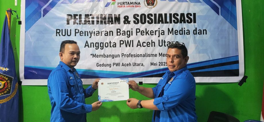 Globaldetik.com | ACEH UTARA – Persatuan Wartawan Indonesia (PWI) Aceh Utara menggelar pelatihan dan sosialisasi terkait Rancangan Undang-Undang (RUU) Penyiaran bagi pekerja media dan anggota PWI Aceh Utara, Sabtu (10/5/2025), di Gedung PWI Aceh Utara, Syamtalira Bayu, Kabupaten Aceh Utara. Seluruh anggota PWI turut hadir dalam kegiatan tersebut.